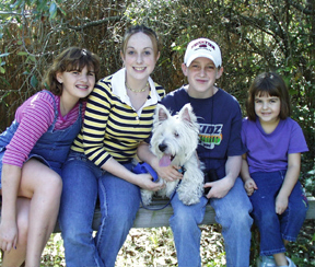Here's the young crowd in the shade of a coastal live oak with ball and Spanish moss overhead, and Turk's cap growing all around (see, I DID learn something!). That's Michelle, Erin, Duncan, Patrick & Sarah (l to r). |