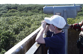 From the top of the observation deck we were finally able to spot some whooping cranes. Sorry, they were too far away for my little camera to spot them, but we got a great view using the telescope above. |